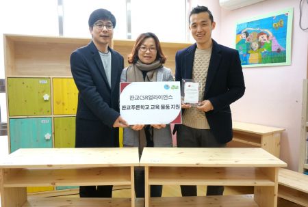 - ‘판교푸른학교 지역아동센터’에 맞춤 책상, 교재 수납장, 사물함, 전자피아노 등 총 500만원 상당 교육 물품 기증