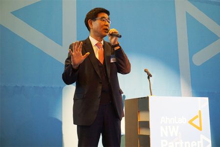 안랩 권치중 대표가 ‘안랩 NW 파트너 데이 2019’에서 인사말을 하고 있다.