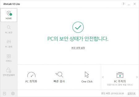 안랩은 그간 사용자의 이용 데이터를 분석해, 많이 사용하는 기능을 메인 화면에 배치하고 PC상태를 한눈에 파악할 수 있도록 메인 화면을 개편했다. 사용자들이 많이 사용하는 기능인 PC 검사, PC 최적화 등을 메인 화면에 배치하고, 다른 검사옵션과 PC관리 기능도 첫 화면에서 모두 실행 가능하도록 구성했다. 또, 초록/주황/빨강의 세 가지 색으로 PC 보안 상태를 직관적으로 표시해 사용자 편의성을 높였다.