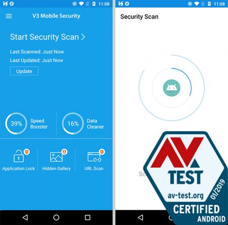 안랩(대표 권치중, www.ahnlab.com )의 안드로이드 스마트폰용 무료 보안 솔루션 ‘V3 모바일 시큐리티(AhnLab V3 Mobile Security)'가 글로벌 보안제품 성능 평가기관 ‘AV-TEST(www.av-test.org )’의 2019년 1월 모바일 보안 제품 테스트에서 종합 점수 만점으로 인증을 획득했다.(보충자료 참고)