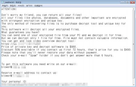 [보충 자료] ‘스톱(STOP) 랜섬웨어’ 랜섬노트 화면