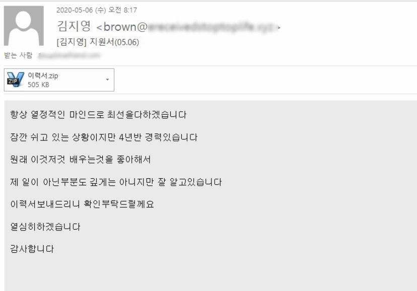 [보충자료] 이력서 사칭 메일 및 악성 실행 파일