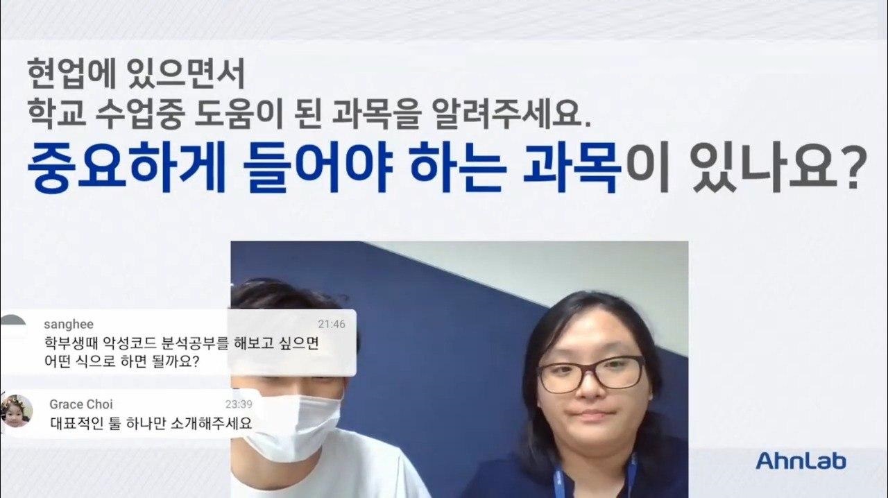 안랩은 코로나바이러스감염증-19(이하 코로나19) 확산 방지를 위해 지난 3월부터 ‘라이브 견학’을 실시하고 있다. 이후 4개월간 1천여 명이 넘는 정보보안분야 전공 및 희망 학생들이 프로그램에 참가하며 큰 호응을 얻고 있다.