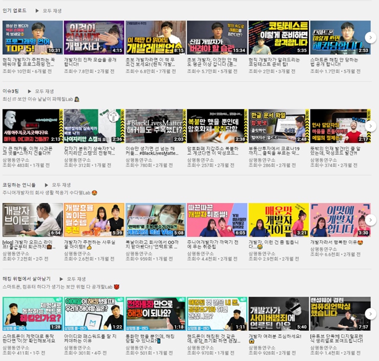 특히, ‘현직 개발자가 추천하는 꼭 배워야 할 프로그래밍 언어’, ‘개발자 진로 탐색 가이드’, ‘개발방법론’과 ‘개발자 일상 VLOG(브이로그)’ 등 개발자 지망생 및 초보 개발자를 위한 영상은 총 12만 회 이상 조회수를 기록하며 채널의 인기를 견인 중이다.