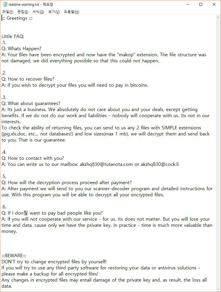 [보충자료] 감염 시 뜨는 랜섬노트