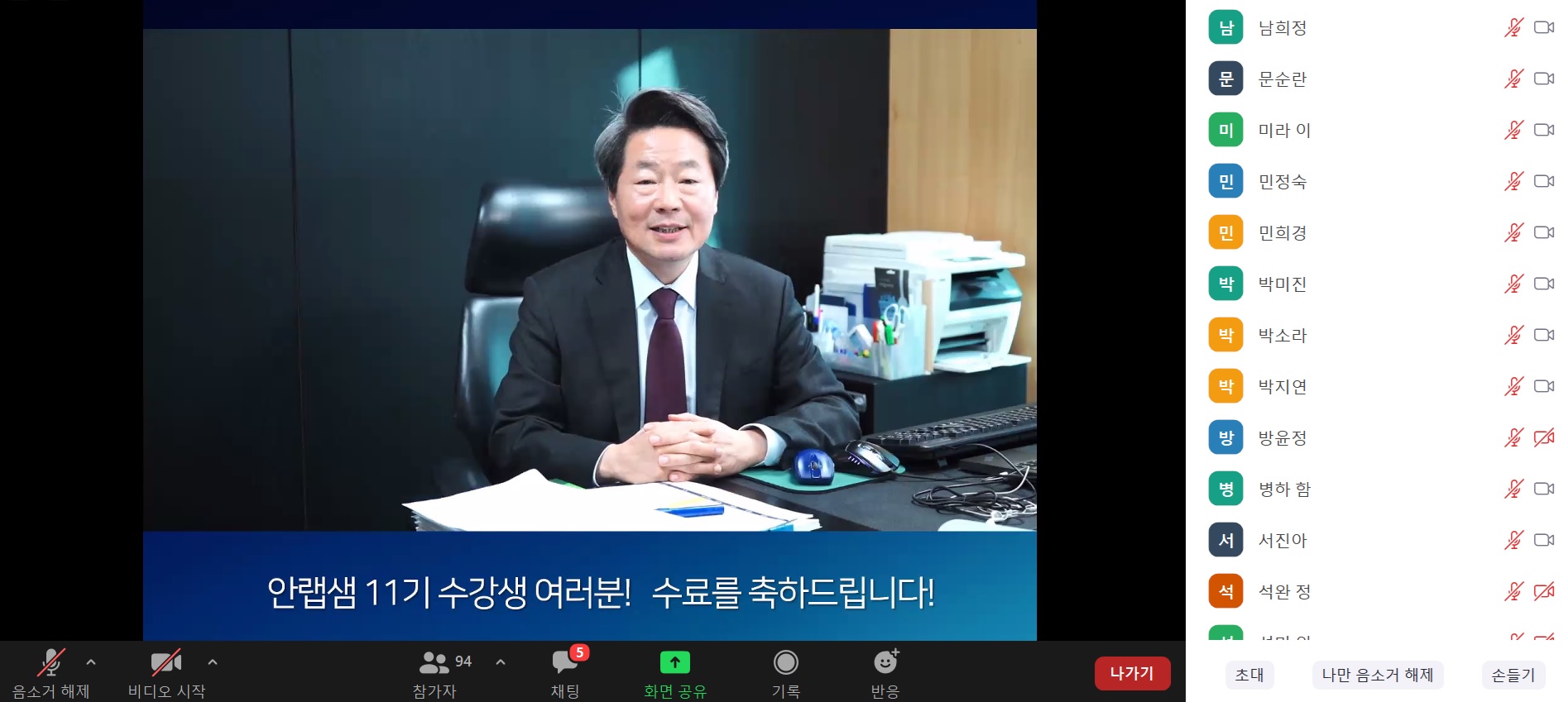안랩 강석균 대표는 ”코로나19 대유행이라는 어려운 상황 속에서도 교육과정을 성실히 이수한 모두에게 축하 말씀드린다”며 “안랩샘 11기 교육을 주춧돌 삼아 앞으로 각자의 영역에서 멋지게 활약하는 모습을 기대한다"고 말했다.