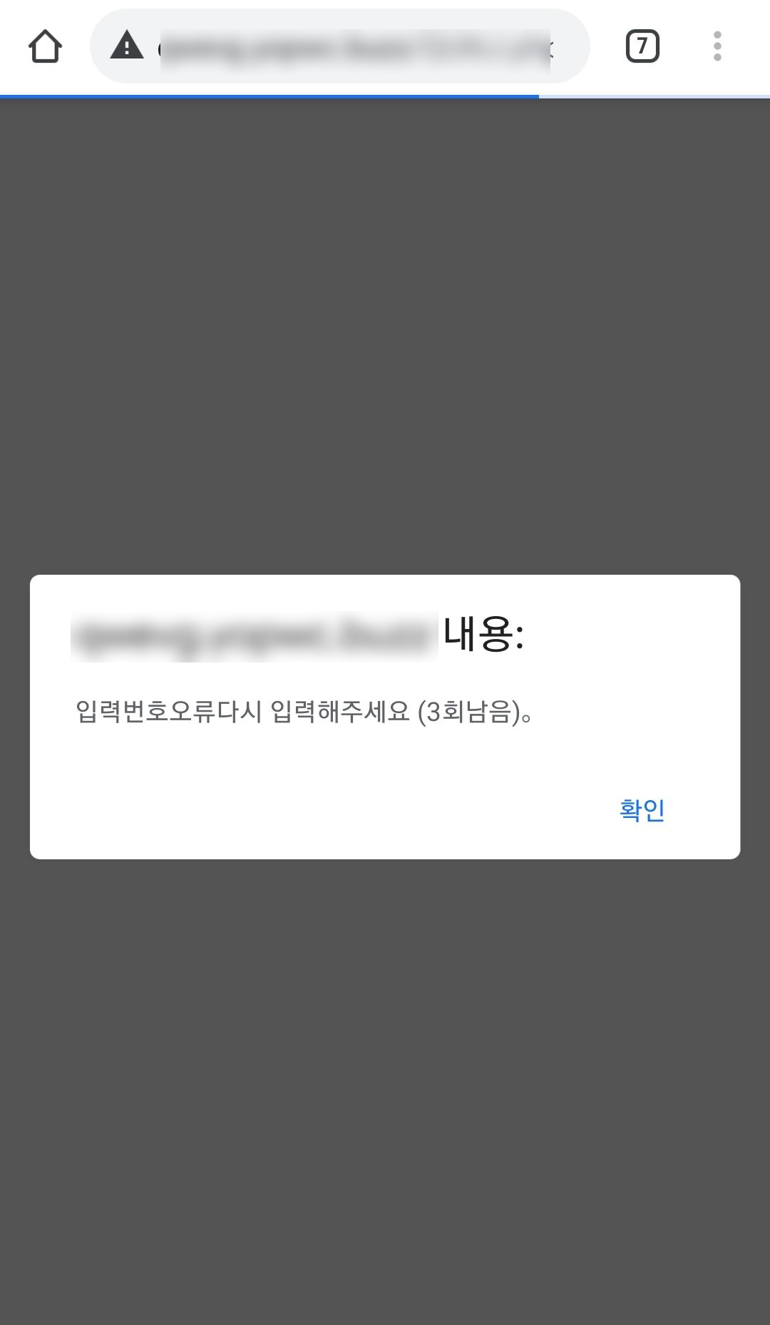 이 과정에서 공격자는 해당 스미싱 문자를 직접 수신한 핸드폰 번호가 아닐 경우 ‘입력번호 오류’라는 메시지를 띄워 악성 앱 다운로드를 막았다(보충자료 3). 이는 보안업체의 악성 앱 샘플 수집/진단 방해를 목적으로 공격자가 미리 확보해놓은 전화번호 DB를 활용해 ‘화이트리스트’ 방식(*)의 악성 앱 유포를 시도한 것으로 추정된다. 현재 안랩 V3모바일 시큐리티는 해당 URL 접속을 차단하고 있다.
