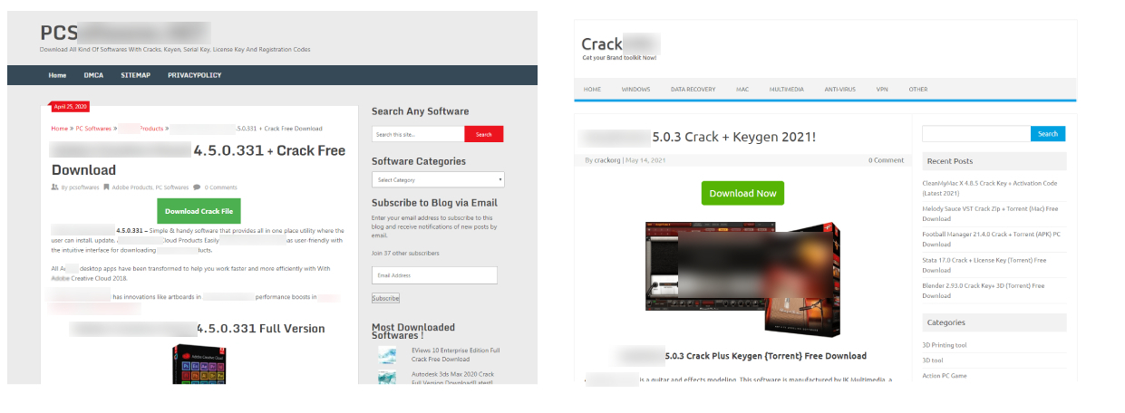 안랩은 최근 업무용 상용 소프트웨어의 크랙(*) 파일 다운로드 사이트로 위장한 피싱사이트를 발견했다. 사용자가 검색 사이트에 특정 소프트웨어의 다운로드와 관련된 키워드를 입력하면 공격자가 미리 제작해놓은 블로그가 검색 결과에 노출된다(보충자료1 참고). 공격자는 웹사이트 주소에도 ‘Crack(크랙)’이나 ‘Free(공짜)’등의 문자를 삽입하고 사이트 내에 상용 소프트웨어에 대한 사용설명서도 올려 사용자를 유인했다. 사용자가 공격자의 웹사이트에 접속해 게시글 속 다운로드 버튼을 누르면 악성코드를 포함한 압축파일(.zip)이 다운로드 된다.