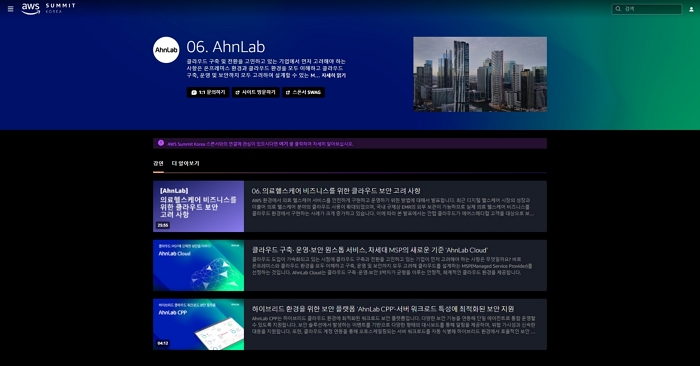 안랩과 에어스메디컬의 발표 영상은 'AWS 서밋 코리아 2022' 행사 웹페이지(https://summits-korea.virtual.awsevents.com/channel/06.+AhnLab/251360423 )에서 다시 시청할 수 있다(로그인 필요).