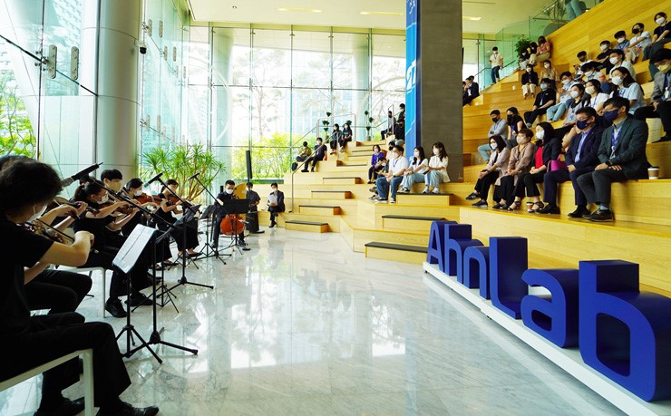 안랩(대표 강석균, www.ahnlab.com )이 13일 판교 안랩 사옥에서 한국장애인고용공단(이사장 조향현, https://www.kead.or.kr )과 함께 발달장애인 예술단 ‘브릿지온(Bridge On, 보충자료 참고)’을 초청해 사내 음악회를 개최했다.