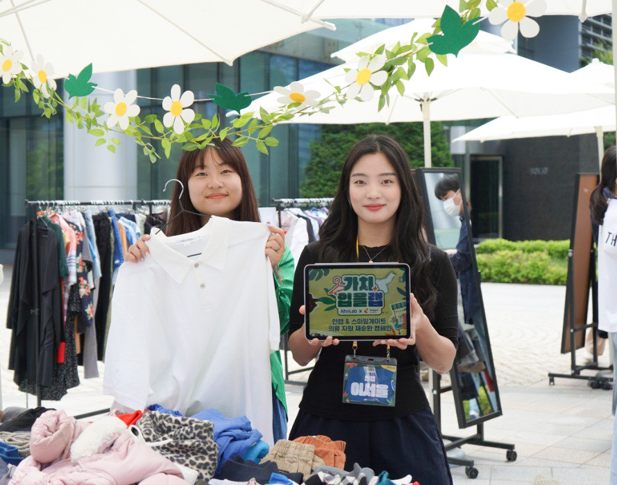 세계 환경의 날(6월 5일)을 맞아 안랩과 스마일게이트 희망스튜디오가 안랩 사옥 2층 야외광장에서 의류 자원 재순환을 위한 캠페인으로 양사 임직원이 기부한 1,000여 벌의 의류를 교환하는 옷 플리마켓 ‘가치입을랩’ 행사를 가졌습니다.