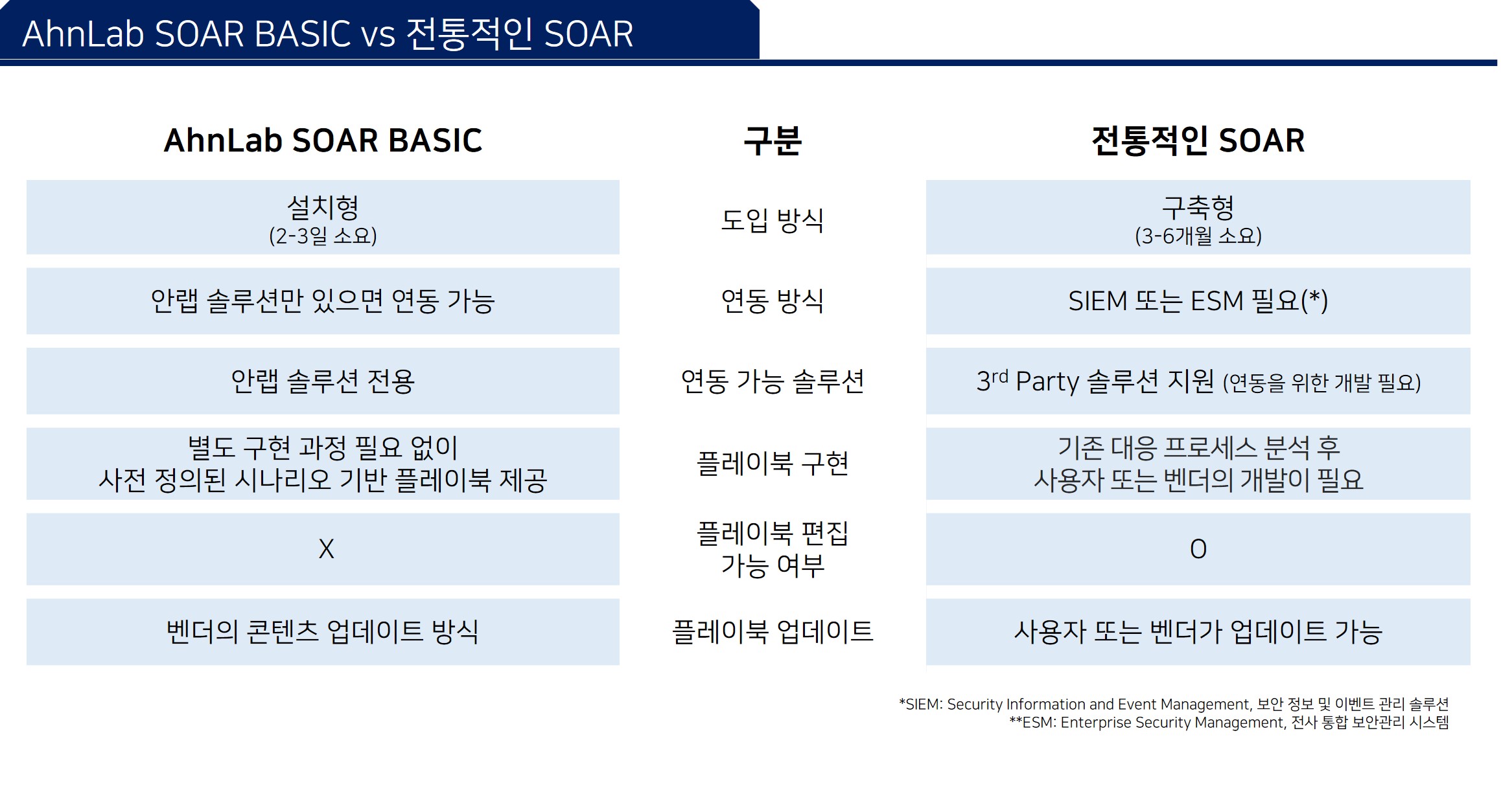 [보충자료] 안랩 SOAR 베이직과 전통적인 SOAR 솔루션 비교