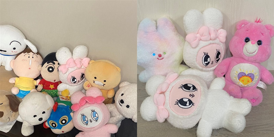 사실 뽑기로 뽑은 인형은 이렇게 많지만(왼쪽 사진), 아직 이별할 마음의 준비가 안된 나머지 추리고 추려.. 이 친구들(오른쪽 사진)만을 보내주기로 했구요.