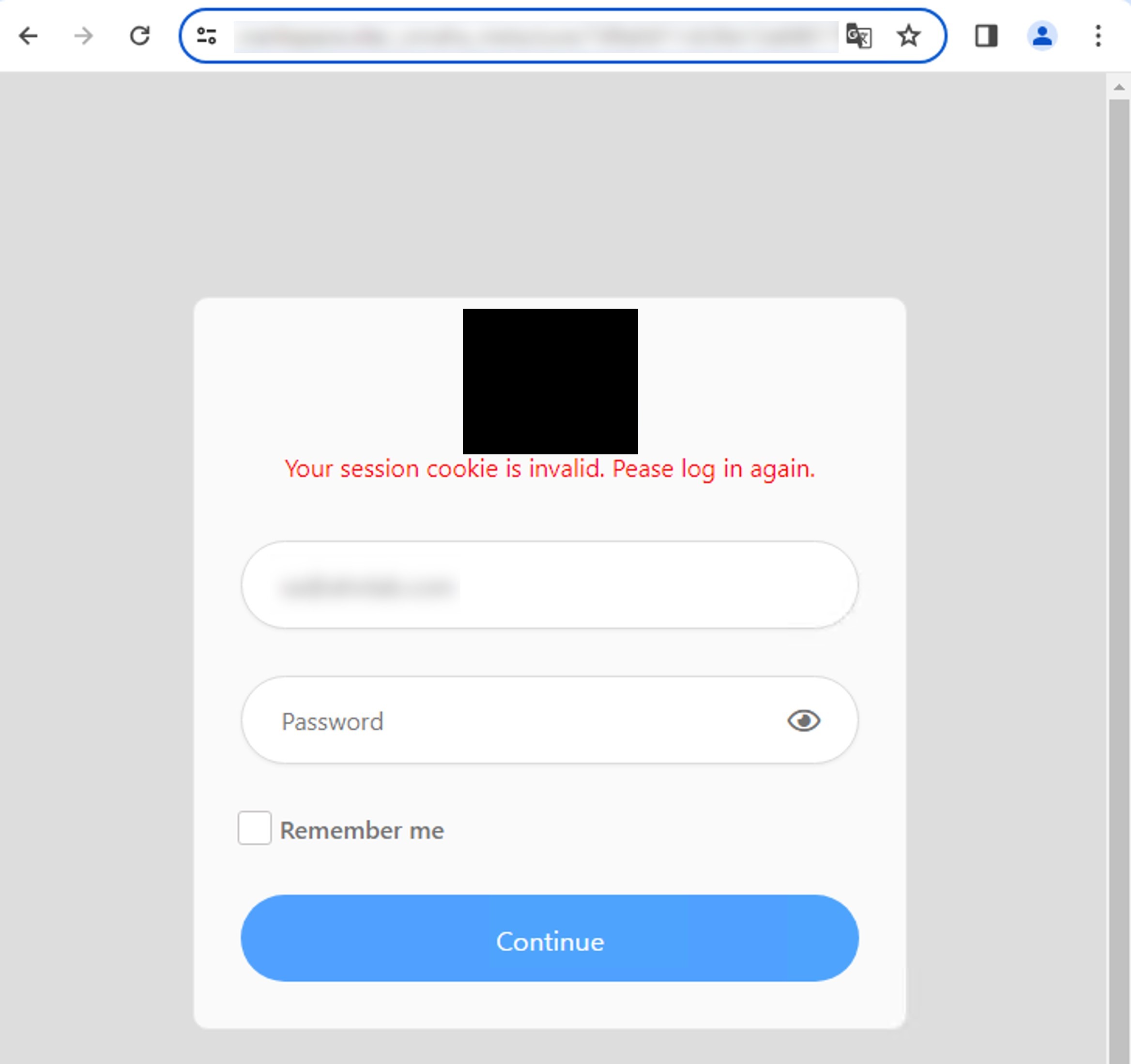 사용자가 속아 메일 본문의 ‘계속’ 버튼을 누르면, ‘세션이 유효하지 않으니 다시 로그인하라’는 메시지로 계정정보 입력을 유도하는 로그인 페이지가 나타난다(보충자료 2 참조). 사용자가 해당 페이지에서 입력한 비밀번호는 공격자에게 전송된다.