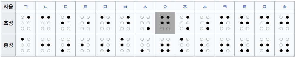 그럼 기본적인 한글 점자표에 대해 알아볼까요?