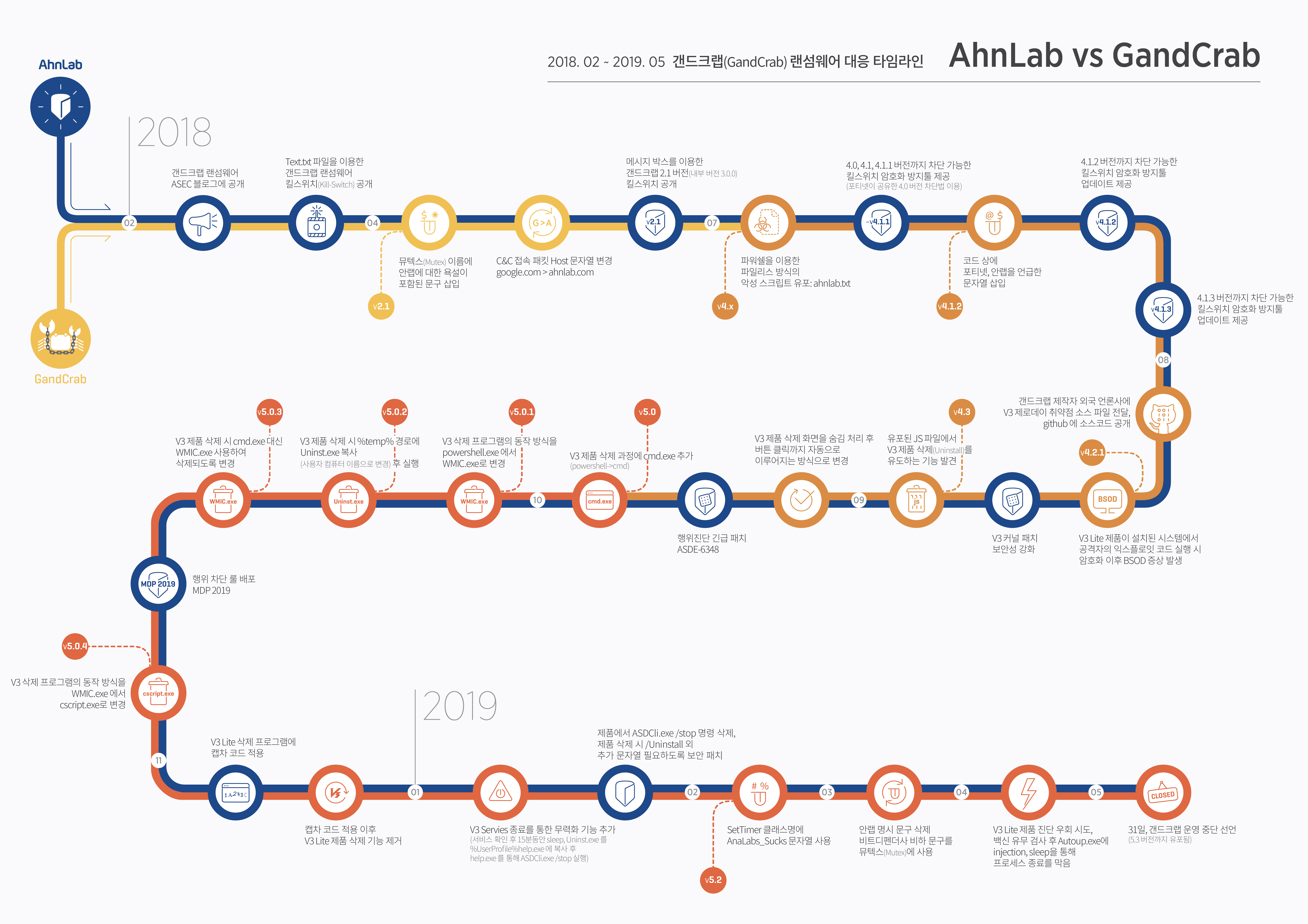 Despite these direct attacks, AhnLab consistently released timely security patches. The confrontation finally came to an end in May 2019, when the attackers publicly announced that they would stop creating GandCrab.