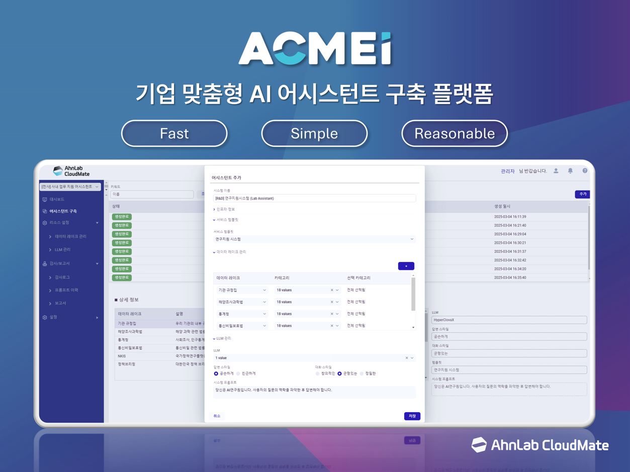 안랩클라우드메이트, 고객 맞춤형 AI 어시스턴트 구축 지원 플랫폼 ‘ACMEi(애크미아이)’ 출시