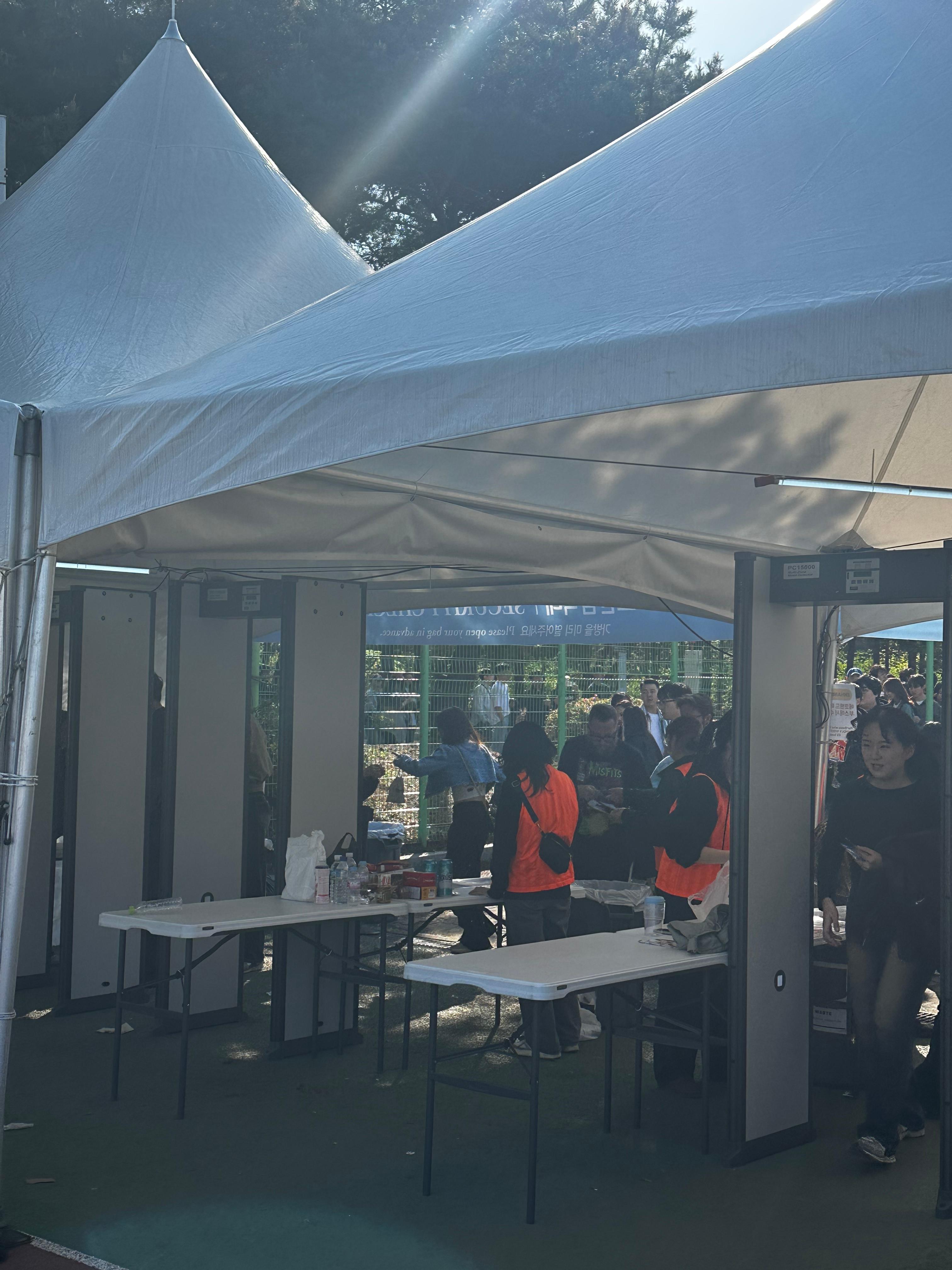 공연장에는 플라스틱 및 일회용 쓰레기를 줄이고자 페트병 반입이 금지되었습니다. 공연장 내부에는 500ml 이하의 재사용 가능한 투명한 플라스틱 물병만 반입 가능했어요.