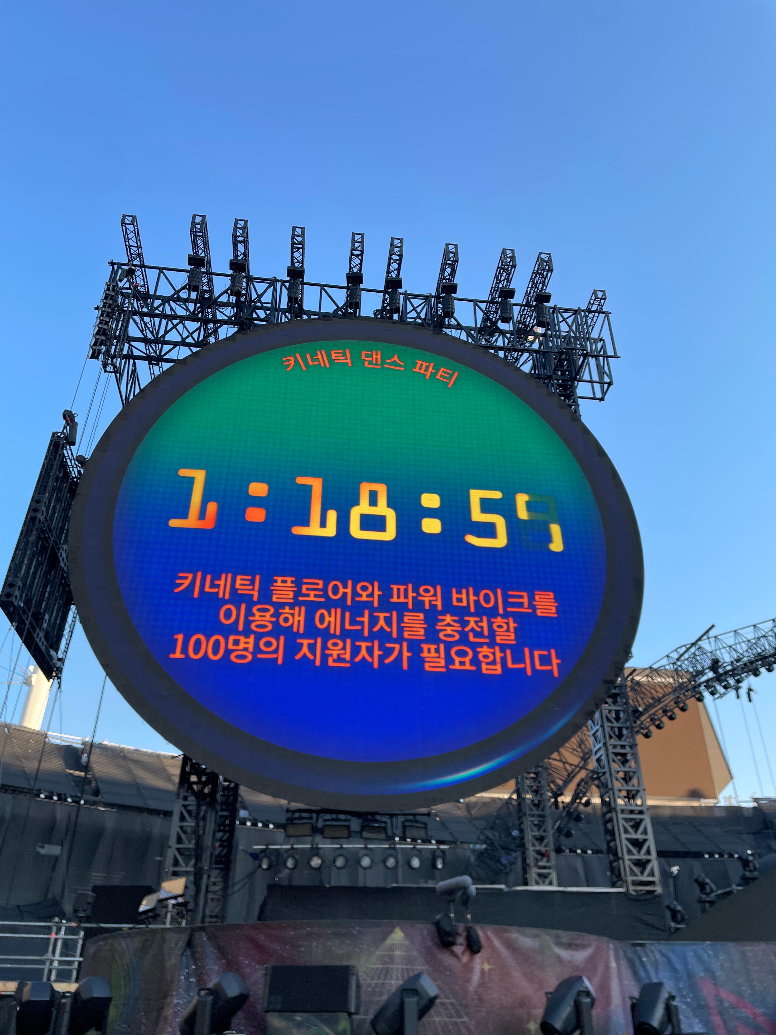 한 가지 인상적이었던 점은 공연 시작 전 각 구역의 키네틱플로어끼리 에너지 생산량을 수치로 보여주며 서로 경쟁할 수 있게 하면서 관객들의 자연스러운 참여를 유도하고, 친환경 활동을 재미있게 즐길 수 있도록 만든 점이었습니다.