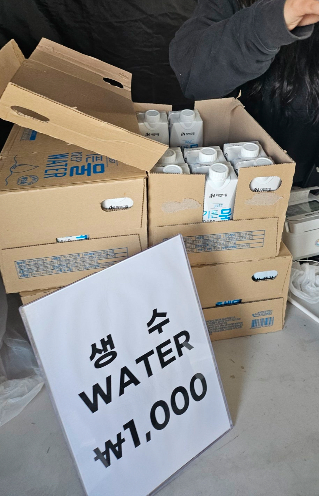 물병을 가져오지 않았던 저는 어쩔 수 없이 공연장에서 종이팩에 담긴 물을 1,000원 주고 구입해 마셨습니다.