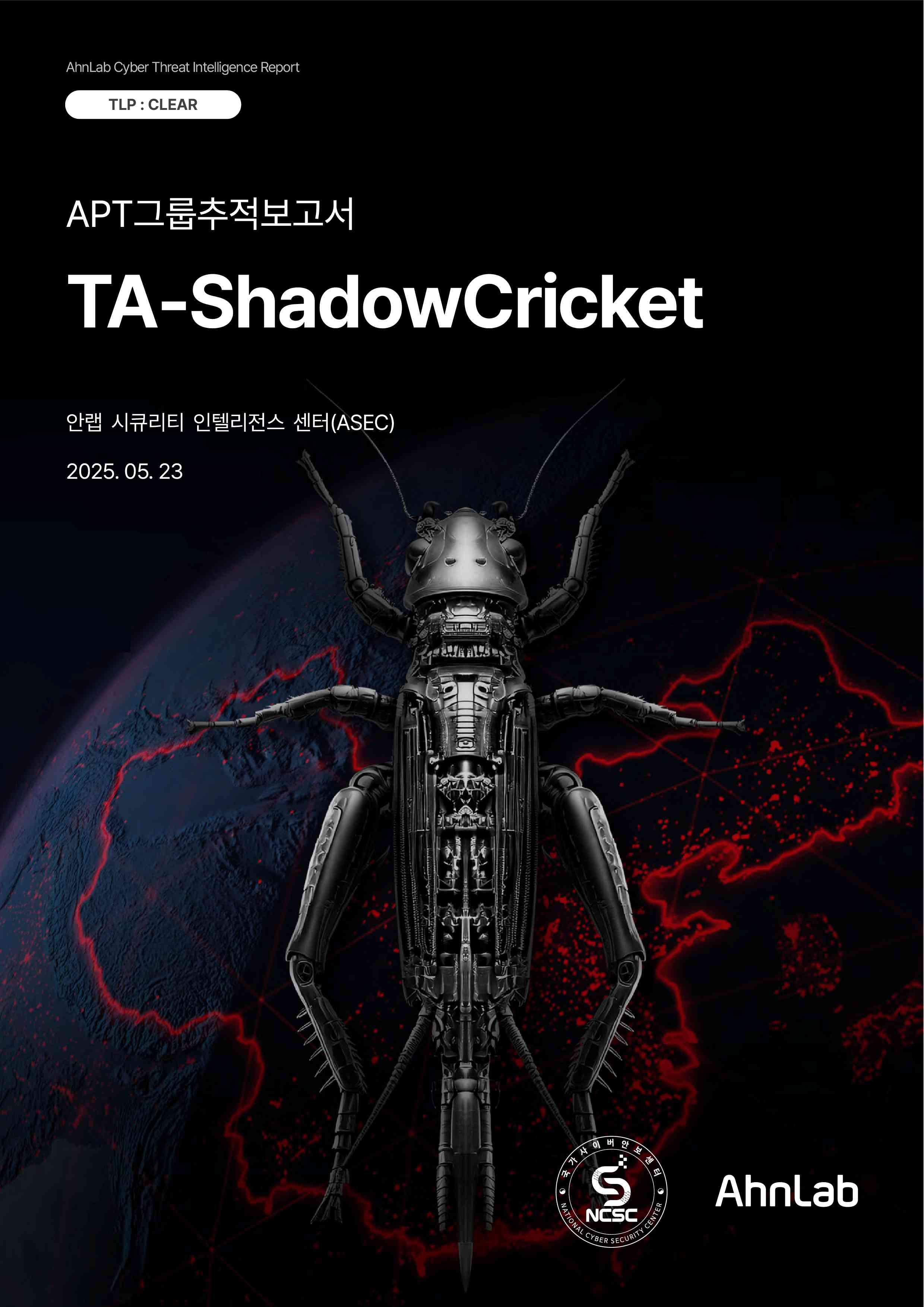 - 안랩 ASEC과 NCSC가 2023년부터 최근까지 APT 그룹 ‘TA-ShadowCricket’의 활동을 공동으로 추적한 결과 발표