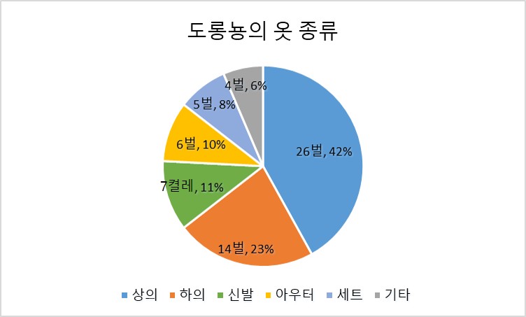 | 비슷한 옷이 많지 않고, 각각의 옷에 쓰임이 달라요. | |