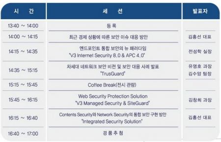 12일(화) 부산을 시작으로 대전, 대구, 광주 지역을 차례로 방문하여, 최신 보안 위협 동향, 통합적 보안 대책 패러다임 제시하고, 안랩이 보유하고 있는 기업용 웹 보안 서비스, V3 IS 8.0, 트러스가드 등 통합보안 솔루션 등을 참가자가 직접 사용해 볼 수 있는 자리를 마련했습니다.