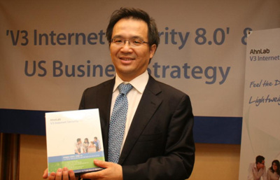 이번에 미국에서 첫 출시하는 V3는 통합보안 신제품으로서 ▶’V3 뉴 프레임워크’가 적용된, 세계에서 가장 가볍고 빠른 세계 최경량 백신이며 ▶신개념 탐지 기술을 탑재해 악성코드 감염 억제력이 높고 ▶안티바이러스와 안티스파이웨어 통합 엔진의 완전한 통합으로 사용자 편의성이 높은 것이 특징입니다. 최근 체크마크(CheckMark), 바이러스 블러틴Virus Bulletin) 등 국제 인증 테스트에서도 100% 진단율을 검증받은 제품입니다.