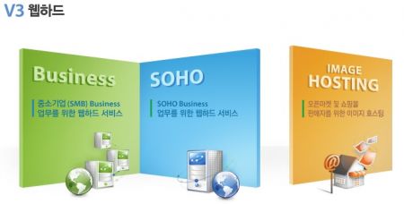 ‘V3 웹하드'는 ‘V3 웹하드 소호/비즈니스/이미지 호스팅’의 세 가지 상품으로 나눠집니다.