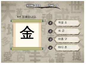 한자를 쉽고 즐겁게 익힐 수 있는 에듀테인먼트 게임이다. 8급부터 1급까지 자신의 수준에 맞게 학습이 가능하다. 각각의 등급에 대해 학습모드와 게임모드가 있으며, 학습모드에서는 다양한 한자의 음과 훈을 학습할 수 있으며, 게임모드에서는 실제 문제를 통해 나의 실력을 테스트할 수 있다.
