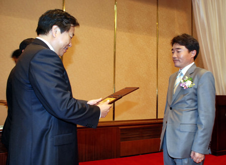 장영실상은 기업에게는 상패와 트로피를, 연구원들에게는 메달과 상패를 직접 수여합니다. 경영지원본부 김기인 상무가 회사대표로 수상을 했습니다.