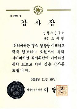 안철수연구소 조시행 상무가 7.7 DDoS 대란 시 성공적인 대응을 총지휘한 공로로 행정안전부장관 감사장을 받았습니다.