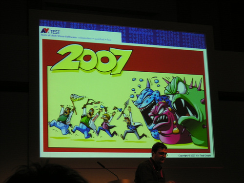 VB 2007에는 기술적으로 혁신적인 내용은 눈에 띄지 않았다. 대체적으로 현재 상황에 대한검토와 2004년부터 금전적 악성코드 제작에 대한 논의가 나왔고 이제 어떻게 악성코드 제작자들이 돈을 벌고 있는지도 알 수 있었다. 주요한 악성코드 관련 주제는 다음과 같았다.
