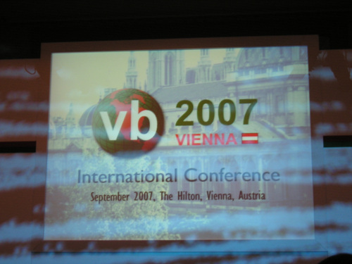 VB 컨퍼런스 2007의 공식일정은 9월 19일부터 9월 21일까지 3일 동안 진행되었다. 하지만, 전 세계 주요 업체 관계자가 모일 수 있는 기회이므로 보통 VB 컨퍼런스 전날에 ICSA(International Computer Security Association) 주체로 AVPD 회의가 열린다.