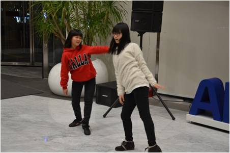 게임하는 시간이 끝나고 이번에는 장기자랑 순서입니다. 아빠는 노래하고 딸들은 앞에 나와서 춤을 추고 있습니다. 원래 가수가 앞에서 노래 불러야 하는 거 아닌가요? ^^*