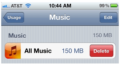 설정 앱을 실행시켜 일반 > 사용내용을 선택한다. iOS 기기가 계산을 마칠 때까지 기다립니다. 목록이 나타나면 음악(Music) 줄 항목을 찾는다. 이제 음악 줄에서 스와이프(Swipe) 조작으로 삭제(Delete) 버튼을 불러와 탭 하면 캐시 된 음악이 삭제됩니다. 이것은 iOS 기기에서 음악을 즐기는 기능에 아무런 영향을 끼치지 않는다는 사실을 기억해야합니다. 아이튠즈 매치 덕분에 원하면 언제든지 아이클라우드에서 음악을 재생시킬 수 있습니다. 이 방법은 아이튠즈 매치가 기기로 다운로드 한 노래를 삭제하지만 언제든지 다시 되돌릴 수 있습니다.
