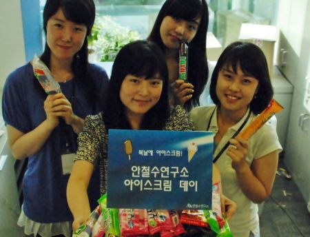 아이스크림데이는 조선시대 궁중에서 더위를 이기라는 뜻에서 높은 벼슬아치들에게 빙표(氷票)를 주어 관의 장빙고에 가서 얼음을 타 가게 하였다는 역사적 사실에 착안해 기획한 이벤트입니다. 안철수연구소 사원들은 잠시나마 아이스크림으로며 삼복 더위를 식히며 신바람 나는 일터를 만들어 가고 있습니다.