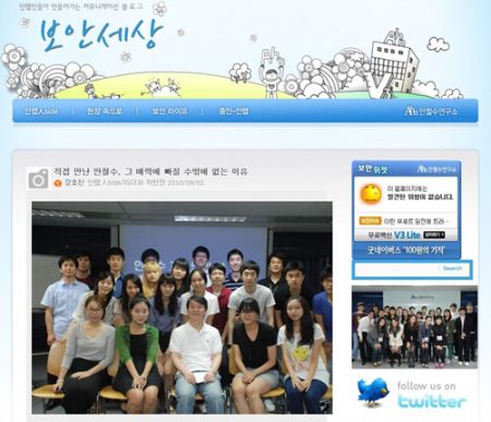 글로벌 통합보안 기업인 안철수연구소(대표 김홍선, www.ahnlab.com)는 자사의 사보 블로그인 ‘보안세상’(http://blogsabo.ahnlab.com)의 방문자가 최근 100만 명을 돌파했으며, 기업 블로그인 ‘세상에서 가장 안전한 이름, 안철수연구소’(http://blog.ahnlab.com) 또한 누적 방문자 수 300만 명 돌파를 앞두고 있다고 밝혔다.