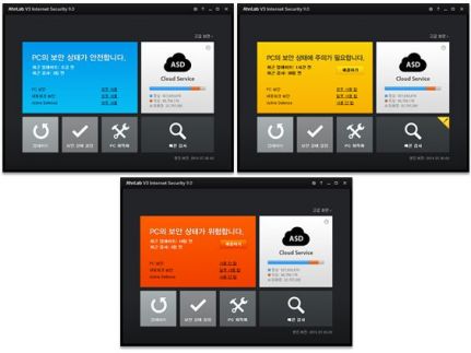 사용자 PC의 보안 상태를 쉽게 파악할 수 있다. 보안 상태는 '안전', '주의', '위험' 세 가지로 표시된다. 보안 상태가 안전할 경우 'PC 보안 상태가 안전합니다'라는 메시지와 함께 파란 화면이 나타난다.