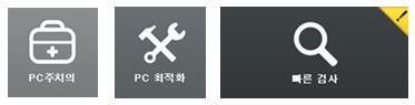 [그림 4] V3 365 클리닉 메인 화면의 PC 주치의, PC 최적화, 빠른 검사 아이콘