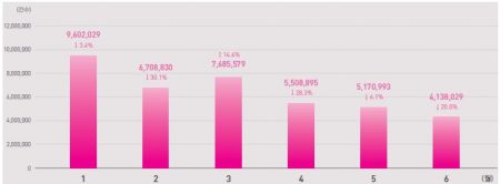 [그림 4] 2013년 상반기 월별 악성코드가 발견된 URL 수 변화 추이