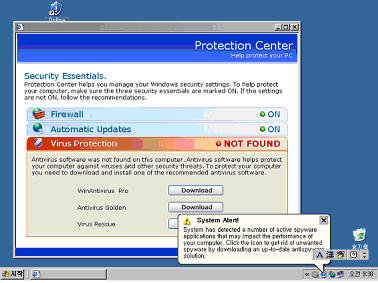 하지만 이 프로그램은 코덱과는 전혀 상관 없는 다수의 스파이웨어 및 허위 안티 스파이웨어(Rogue Anti Spyware)를 사용자 동의 없이 설치하는 프로그램입니다. 이렇게 설치된 스파이웨어는 [그림 2-5]와 같이 허위 보안 경고 창과 풍선 도움말을 지속적으로 보여주고, 허위 안티 스파이웨어 프로그램을 통한 결재 및 치료를 유도합니다.