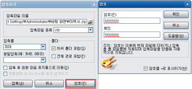 내 컴퓨터에 유출되면 큰일이 나는 중요한 개인 정보나 사적인 사진을 저장하려면 어떡해야 할까? 암호를 걸어 압축해두는 방법이 가장 좋다. 대부분의 압축 프로그램은 암호화 기능을 제공하고 있다. 암호를 설정하면 압축을 해제할 때 반드시 암호를 입력해야만 해제할 수 있다.