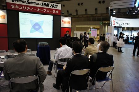 안랩 일본법인은 이번 전시회에서 네트워크 보안 솔루션인 “안랩 트러스가드 UTM 1000 (AhnLab TrusGuard UTM 1000)”과 보안관제 서비스 “안랩 세피니티 (AhnLab Sefinity)” 를 전시했습니다.
