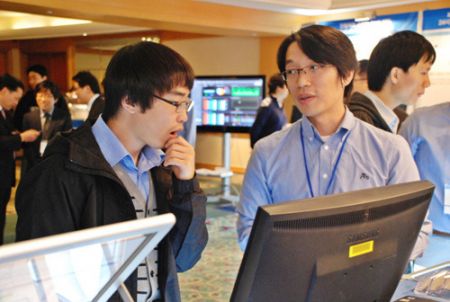 이어서 인터넷 뱅킹 등 일상생활에서 흔히 겪을 수 있는 웹 보안의 이모저모와 사이트케어(SiteCare) 및 트러스라인(TrusLine)의 소개를 사업기획팀 김창희 과장이 맡았습니다. 최근 화두인 스마트폰 보안 위협과 그 대응 방안은 모바일개발팀 최은혁 팀장이 발표했습니다. 특히 이날 행사에는 IT관리자 및 일반인 뿐만 아니라, 보안에 관심이 많은 청소년들도 참석해 발표에 귀를 기울이는 모습을 보였습니다.