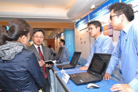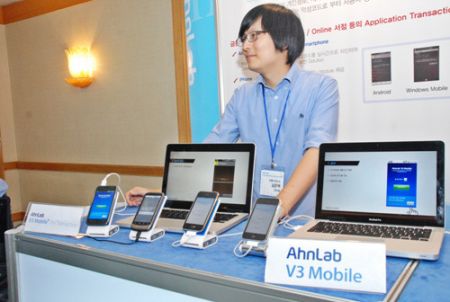 이날 행사장에는 DDoS 전용 장비인 트러스가드 DPX와 통합보안관리 장비인 APC 어플라이언스 등 안철수연구소의 제품이 전시되었고, 스마트폰 보안 솔루션인 V3 모바일, 웹쉘(WebShell) 보안관제서비스 등 제품별 부스 또한 마련되어 고객에게 유익한 정보를 제공했습니다.