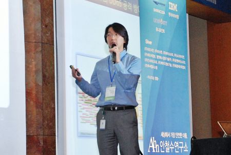 이어지는 순서는 시큐리티대응센터 전성학 본부장의 발표였습니다. 전성학 본부장은 최근 이슈인 각종 악성코드 문제 분석 및 이를 위한 대응 기술인 'AhnLab Smart Defense'를 소개했습니다.