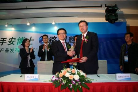 한편, 이날 행사에서 안철수연구소는 중국 복건성의 삼명대학교(http://www.smc.edu.cn)의 류지엔 부총장이 참석한 가운데 트러스가드 UTM 보안 장비 및 V3를 기반으로 하는 연구시설 구축과 삼명대학교 학생 대상 네트워크 보안 전문과정 및 교육 커리큘럼 제공, 교수진 교육 지원을 골자로 하는 후원 조인식을 가졌습니다.