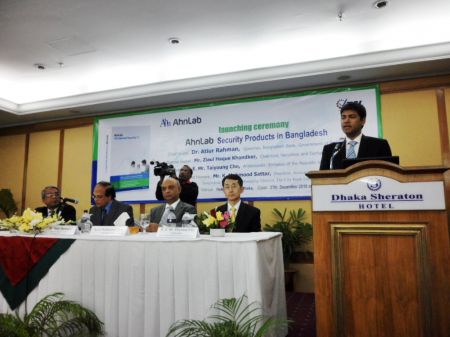 글로벌 통합보안 기업인 안철수연구소(대표 김홍선, www.ahnlab.com)는 27일 방글라데시 쉐라톤호텔에서 제품 및 서비스 공식 발표 행사를 갖고, 방글라데시의 주요 소프트웨어 개발 및 유통 전문업체인 ‘테크놀로지 솔루션즈 리미티드(Technology Solutions Limited, 이하 TSL)’과 제품유통 업무제휴를 맺었다고 발표했습니다.