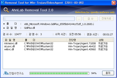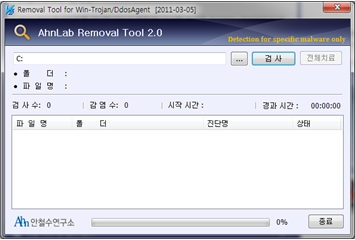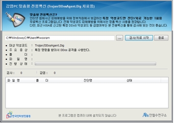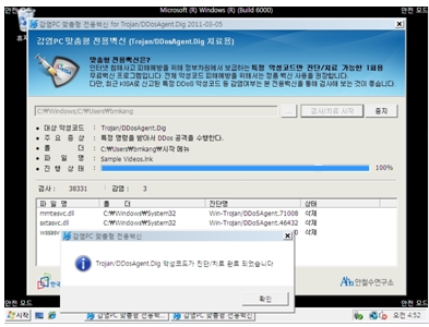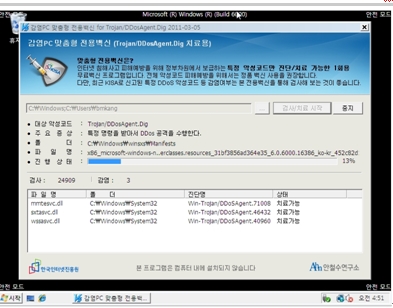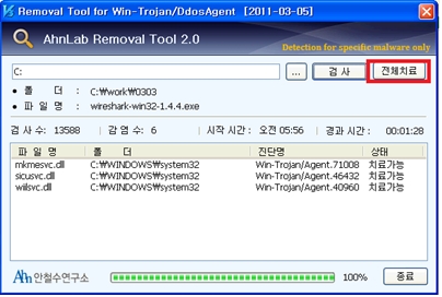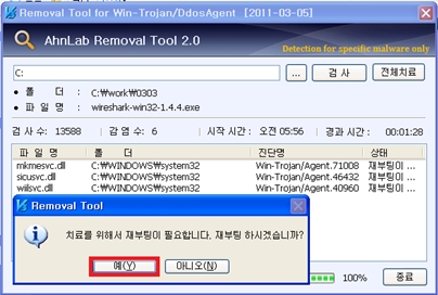 4) 디도스 전용 백신으로 악성코드를 치료한 후 PC를 재부팅한다.